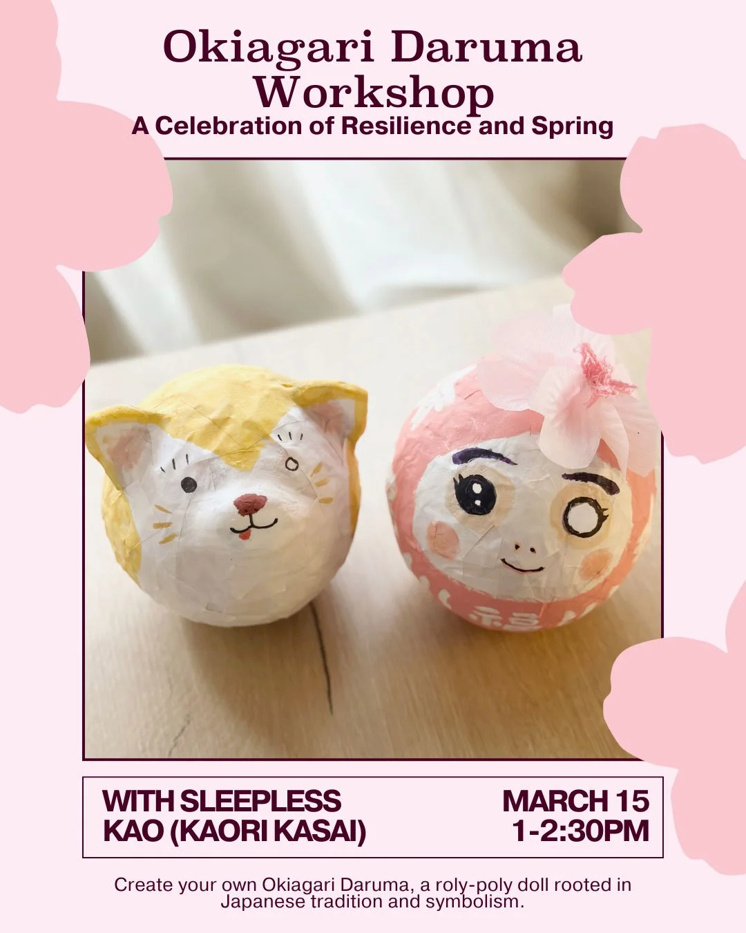 Community-based workshop exploring Japanese cultural symbolism through contemporary Okiagari Daruma making.