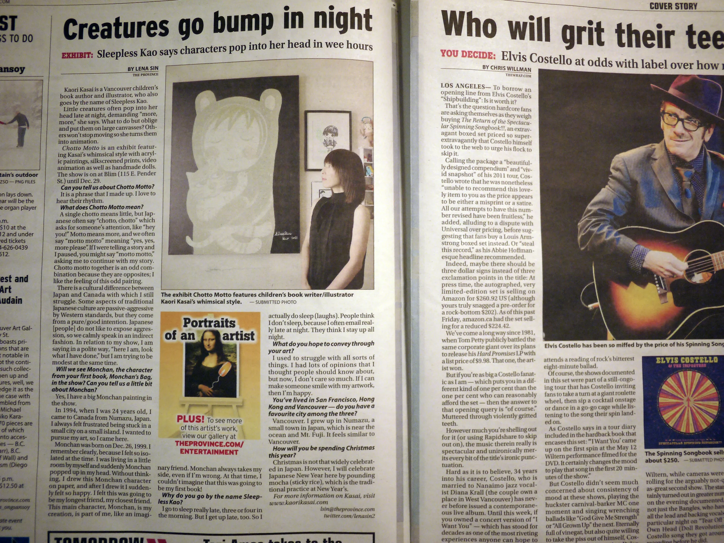 Featured in a full-color article titled “Creatures go bump in the night – Sleepless Kao says characters pop into her head in wee hours”.