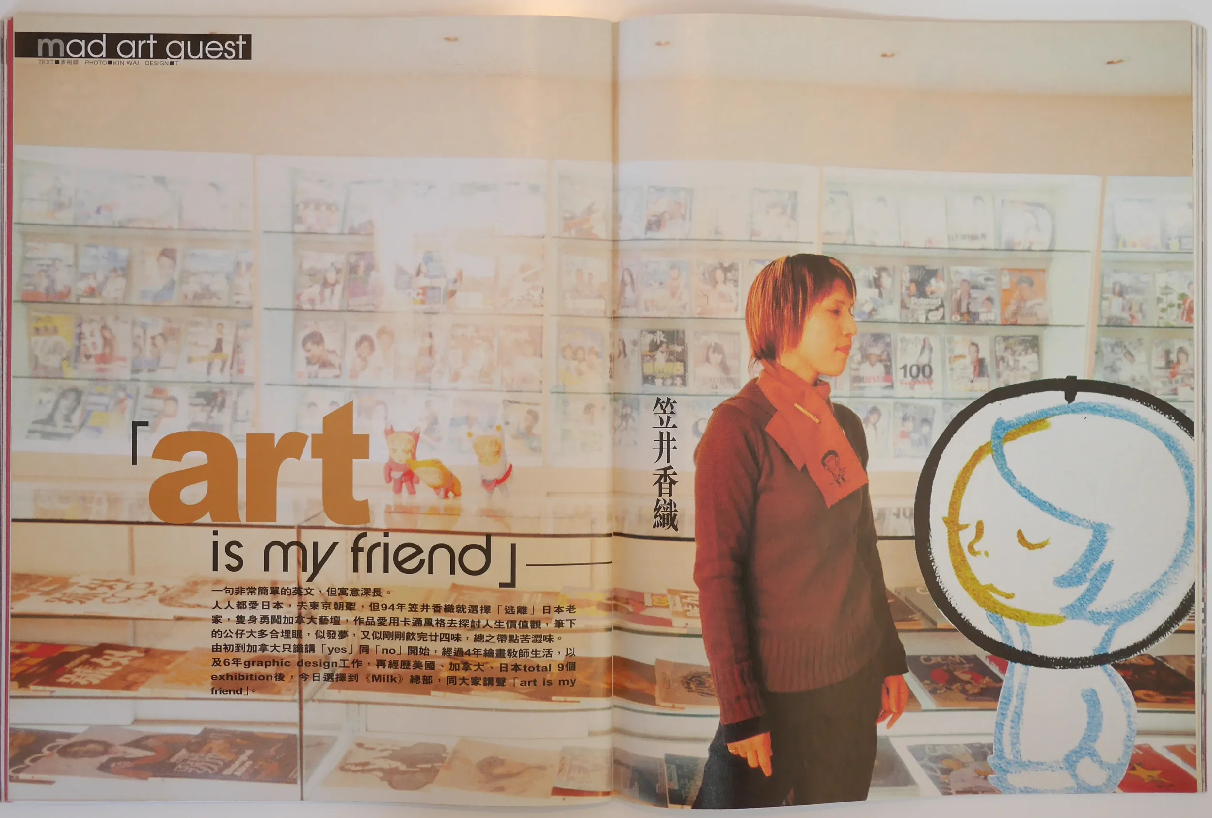 A four‑page color feature spread in MiLK Magazine, showcasing Kao and her work, photographed with her pieces. MiLK Magazine is a well‑regarded Hong Kong culture and lifestyle publication. 维基百科